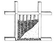auf Staken, Ausmauerung aus Lehmziegeln, Lehmwickeldecken, usw.).