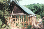 und Weidengeflecht und einem Lehmbewurf wiederhergestellt. Als Bewitterungschutz erhielt
